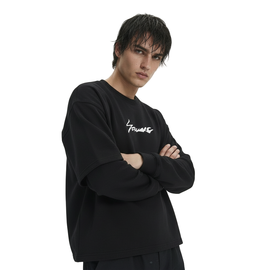 Elevate your wardrobe with this unisex layered sweatshirt, designed for effortless comfort and modern versatility. Crafted from 100% 400 GSM fleece, it offers a luxuriously soft feel while ensuring warmth and durability for everyday wear. The relaxed drop-shoulder fit enhances ease of movement, making it perfect for layering or wearing on its own.